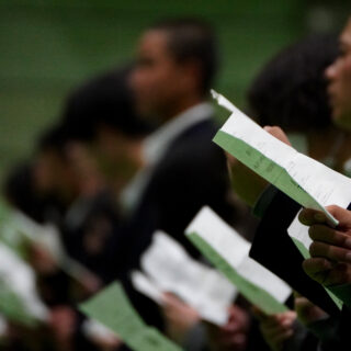 校長先生の式辞、ご来賓の祝辞のあと、在校生の送辞、卒業生の答辞と続きます。