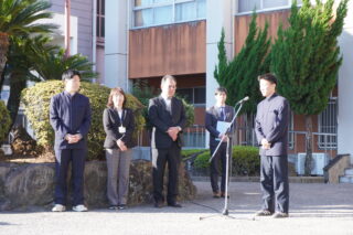 表彰伝達が行われ、最後に終業式となりました。校歌が流れ、そのあと校長先生のお話がありました。
