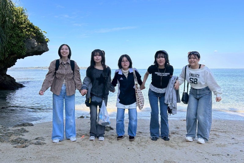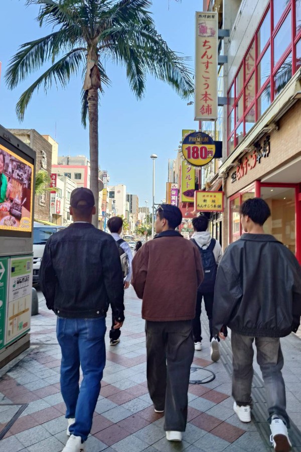 ■2025年12月18日(木)修学旅行三日目(最終日)、午前中は総合ビジネス科と普通科がアメリカンビレッジ、デザイン表現科は沖縄県立博物館・美術館(おきみゅー)から始まりました。お昼前からは全学科国際通りに集まり、ランチやアクテビティ、ショッピングを楽しみました。帰路の飛行機は予定より少し遅れましたが、和歌山市到着は、ほぼ予定通りで修学旅行の行程を無事に終了しました。