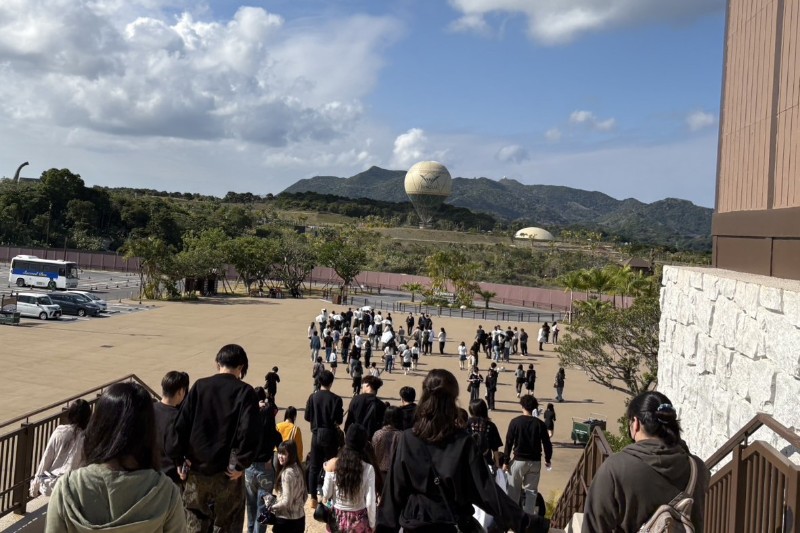 ■2025年12月17日(水)修学旅行二日目、ほんの少し雨がパラつきましたがほぼ晴天で旅程に影響はなく、美ら海水族館の鑑賞をした後、ジャングリアをしっかり満喫し、ニ日目も無事行程を終えました。初日から早起き&遅寝で、みんなクタクタ…早く寝て最終日も元気満々で楽しみましょう。