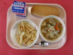 今日の献立は、タイピーエン フライドポテト パン 牛乳 です。