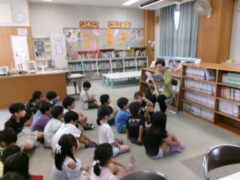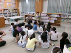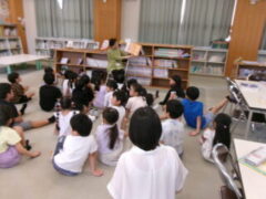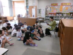 今日は地域の方に来て頂いて本の読み聞かせをしていただきました。1・2・3年の子供たちは楽しそうに聞き入っていました。