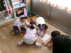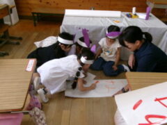 1年生は図工で「いもたろうのおめん」を作っていました。いもたろうは、水に浸けて栽培?していたさつまいもを見て名前をつけたのでが「いもたろう」です。1年年生の子供たちの癒しのキャラクターになっています。いもたろうのお話づくりもして、学習発表会では、いもたろうの劇をするそうです。とても楽しみですね。とても楽しそうに活動していました。