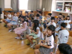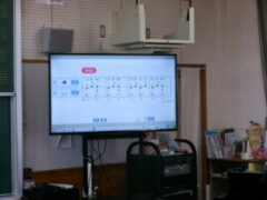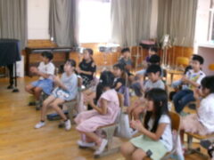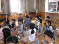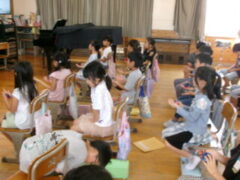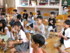 2年生は音楽で、カスタネットとタンバリンでリズム打ちを楽しんでいました。