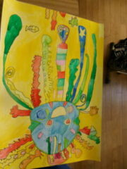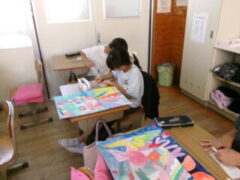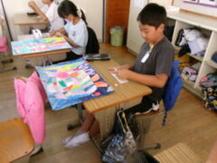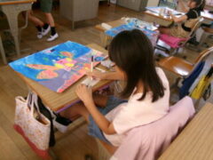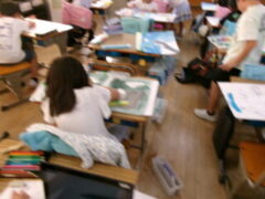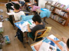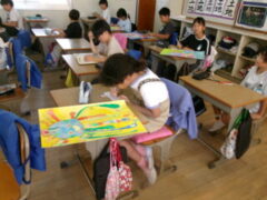 4年生は図工で「水の中のふしぎな世界」をテーマに絵を描いてきました。この時間は、仕上げに頑張っている人、完成した人は、名札づくり(絵を説明した文も入れて)をしていました。なかなかカラフルでおもしろい作品がさくさん仕上がっていました。みんな頑張りましたね。