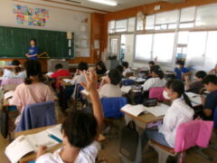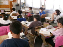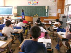 4年生は国語で「1つの花」を学習しています。この時間のめあては、「戦争にいくお父さんの思いを考えよう。」でした・お父さんがゆみこに言った「ゆみ さいご1つだけあげよう。1つの花をだいじにするんだよう・・・・」ところを子供たちは意見を出し合って理解を深めていました。