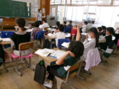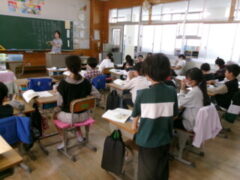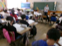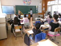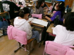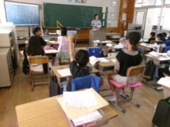 3040(4年 国語) 投稿日:2025年10月21日 4年 国語 4年生は国語で「1つの花」を学習していました。この時間のめあては、「十年後のゆみ子の生活の様子について考えよう。」でした。みんな友達の意見につなぎながら発表していました。