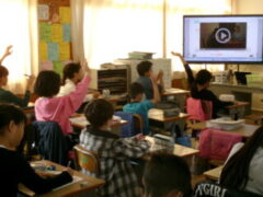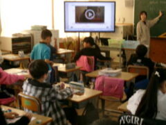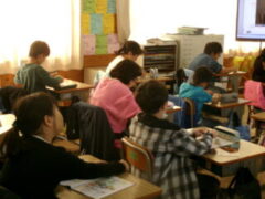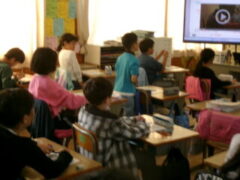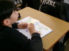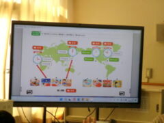 4年生は外国語活動で時間の聞き方を学んでいました。