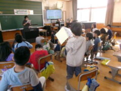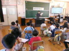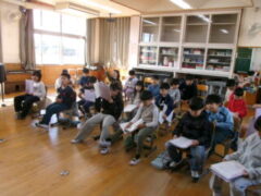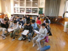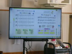 3年生は音楽で「あの雲のように」で、めあては、「拍子のかんじを生かしてえんそうしましょう。」でした。