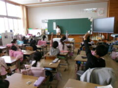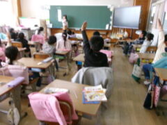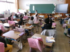 1年生は算数で「答えが11になる式を考えていました。よく手が上がっていました。