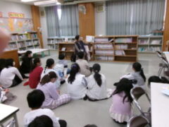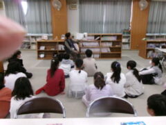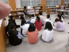 5年生は本のの読み聞かせがありました。本の物語の世界に入っていました。
