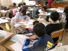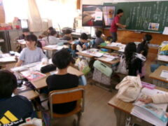 3年生は道徳で「同じなかまだから」のお話で学習していました。このお話は、体育の競技でその子が入ると負けてしまう。だから、仲間外れにしようとする子が出てきます。その子に主人公が別の学校に転校して、仲間外れにされている友達にお手紙を思い出して、「同じ仲間なんだから」と勇気を出してみんなに話すお話です。3年生の子供たちは、意欲的に考え、すてきなつぶやきがたくさんありました。