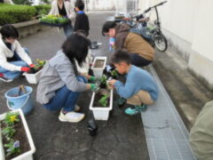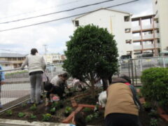 先日、11月1日(土)に秋の花壇整備がありました。約30名近くの参加者があり、花壇やプランターにパンジーを植えて頂きました。これから寒くなる冬を越えて、春の卒業式や入学式の頃に咲くよう、飼育・栽培委員会の子供たちと育てていきたいと思います。育友会役員及び保護者の皆様方、お世話になりありがとうございました。