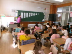 1年生は算数で、足して答えが「11・12・13・14・15・16・17・18・19」になる足し算をがんばって考えていました。