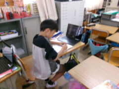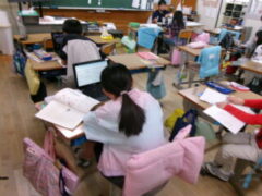3018(3年 〇〇のひみつを伝えよう) 投稿日:2025年11月4日 3年 〇〇のひみつを伝えよう 3年生は国語で身近な道具(もの)のひみつを伝えるレポートづくりの学習をしていました。例えば「えんぴつのひみつ」、「はさみのひみつ」などです。それぞれ考えた身近な道具について、端末機で調べていました。