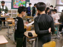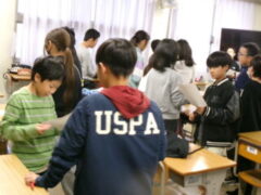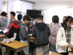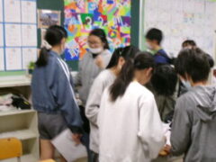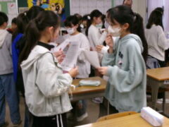3033(6年 西和ブロック4校交流会②) 投稿日:2025年11月4日 6年 西和ブロック4校交流会② 各教室では、自己紹介が済んだ後、自己紹介ビンゴゲームをして交流しました。始めは恥ずかしがって自分たち学校の仲間と固まりがちでしたが、時間とともにばらけて各校が交わるようになり交流が深まっていきました。