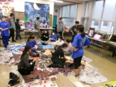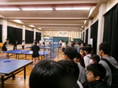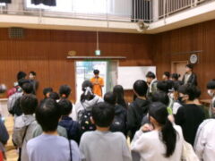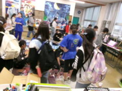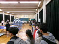 各教室で交流会が終わった後、2つのグループに分かれてクラブ見学しました。雨だったので、すべてのクラブを見学するのは無理でしたが、卓球、美術、ソフトテニス、サッカー、野球、吹奏楽部などを見学しました。