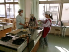5年生は学級でさつまいもチップスを作っていました。さつまいもを薄切りにして、ホットプレートで焼こうとするところでした。きっと、みんなでおいしく頂いたことでしょう。