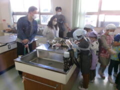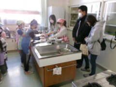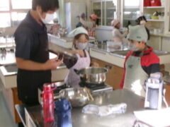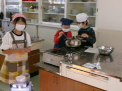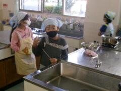 3年生は、1時間目にサツマイモを蒸していました。参観の時間は、それらを潰してスィートポテトをつくりました。保護者方にも手伝ってもらって頑張っていました。おいしそうなにおいがぷんぷんしていました。きっとおいしかったでしょうね。