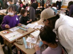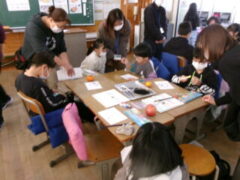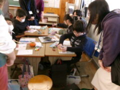 4年生は絵手紙のづくりに挑戦しました。秋の果物を題材に筆で描いていました。保護者の方もサポートしていました。秋の香りがする作品ができたでしょうか。