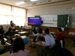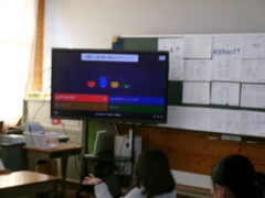 5年生は,国語の教材で「1週間チャレンジ」の学習で、学校生活をよりくするための提案がありました。それは、Kahoot学習クイズでした。アプリで子どもたちがクイズを作り、それをみんなで挑戦していました、観ていた保護者の方たちも楽しまれていました。