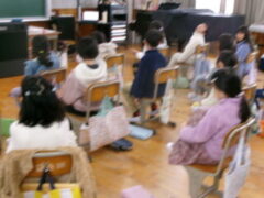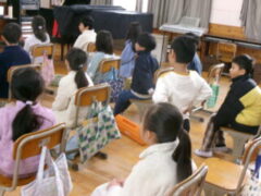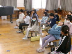 2年生は音楽で「トルコ こうしんきょく」を聴いていました。この行進曲にどんな楽器が使われているか質問されていました。