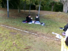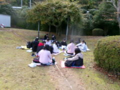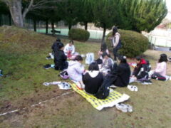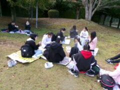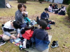 午前中の学習が終わり、近くの広場でお弁当を食べました。外は寒かったのですがみんなで固まっておいしくいただきました。