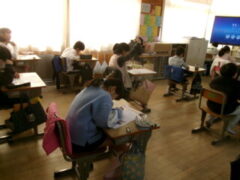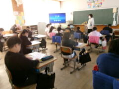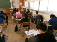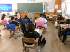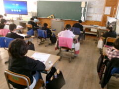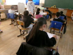 4年生は算数で「面積」のテストに取り組んでいました。集中していました。