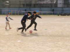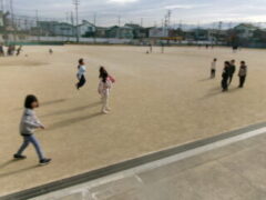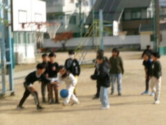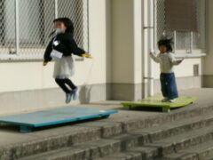 大休憩に今年もトントンの音が聞こえてきました。何年生かなと思いながら運動場にでていきました。何と1年生でした。1年生がジャンプボートを使ってなわとびの練習をしていました。今日は暖かいのですが、なわとびで体力をつける季節がやってきました。もっとトントンと音がなり響くことを期待しています。さて、運動場を見渡すと、6年生がサッカー、3年生がバスケットボール、1年生がドッジボールなど思い思いに遊んでいました。