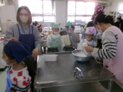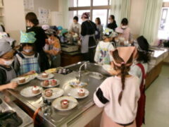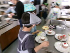 先日、2年生は2回目のケーキづくりに挑戦しました。この日、午前中にケーキの土台(スポンジ)づくりを頑張りました。そして、午後からデコレーションを頑張りました。子供たちに、「ケーキづくりは、どうでしてたか?」と聞くと、「楽しかった」「おいしかった」など笑顔で答えてくれました。放課後、いろいろ教えて頂いたケーキ屋さんに数人子供たちがお礼のお手紙を届けに行きました。今回の取り組みに、保護者の皆様にはいろいろご支援・ご協力いただきまして本当にありがとうございました。