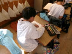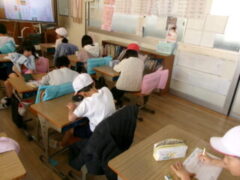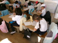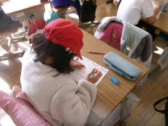 2年生は、招待状を書いていました。誰に何のために招待状を書いているかというと、おもちゃランドに1年生を招待するためです。2ね生は「どんなブースをつくっているか。ひみつにしてね。」と言うぐらい、1年生に楽しんでもらうためにみんなで協力して頑張っています。