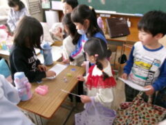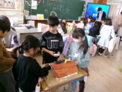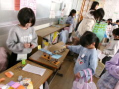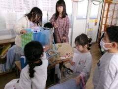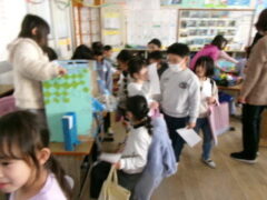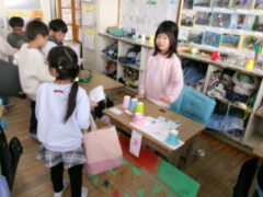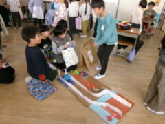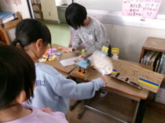 2年生は、ブースのゲームのルール説明をしたり、うまく操作ができるように手伝ってあげたり頑張っていました。その表情は、お兄ちゃんお姉ちゃんになったたくましさと下の子へのやさしさがありました。1年生は、いろいろばブースを楽しみ、景品をもらって楽しくて夢中になっている姿がたくさん見られました。お互い楽しめたおもちゃランド、2年生のおもてなしは、大成功でした。