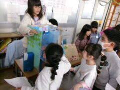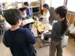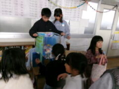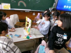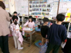 この日、1年生と2年生は、2年生主催のおもちゃランド交流しました。2年生は、1年生に楽しんでもらおうと、本やネットで調べたことをヒントに、いろいろなブースづくりや景品づくりを頑張ってきました。1年生は招待状をもらいとても楽しみにしていました。開店直前の2年生は、「1年生はまだ来ないのか」といつぶやきがあり、気持ちは最高潮に達していました。1年生は1年生で、「廊下でまだ教室に入れないのか」と話していたそうです。そして、そして、いよいよ始まりました。