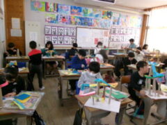 4年生は図工で「コロコロガーレ」づくりに取り組んでいました。もうすぐ仕上がるのでしょうか。頑張って取り組んでいました。