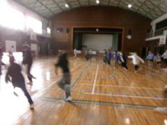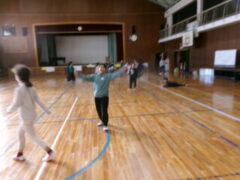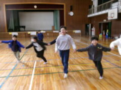 体育館からとても楽しそうな声が聞こえてきました。少し時間が経った聞こえてきます。何年生だろうと思って体育館を覗くと、先生もみんなも楽しそうに鬼ごっこをしていました。「何鬼しているの」と聞くと、てつなぎ鬼をしていました。笑顔いっぱいの学級会でした。