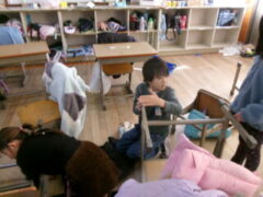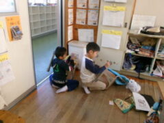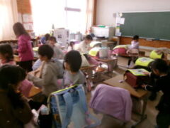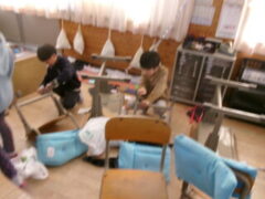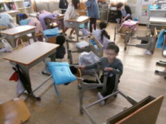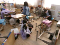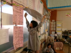 2年生はみんなで教室の窓を拭いたり椅子の細かいコミをとったりと美しくなるように掃除していました。