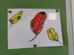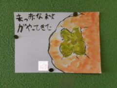 4年生は11月の参観で絵手紙に挑戦していました。運動所へ出る廊下の掲示板に掲示しています。1部を紹介します。