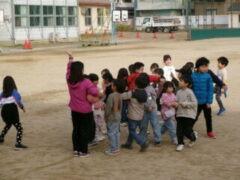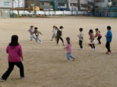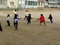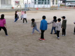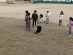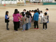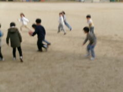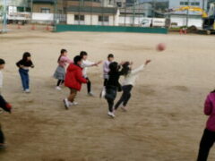 1年生は、休憩時間によくドッジボールをしています。この日は、お楽しみ会でドッジボールをして盛り上がっていました。