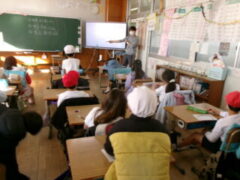 2年生は、今年頑張りたいめあてを絵馬のシートに書こうとしていました。どんなめあてを考えたのでしょうか?