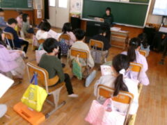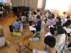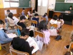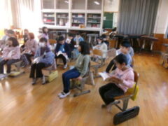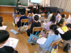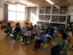 2年生は音楽で「小ぎつね」を練習していました。テーマは、かしのようすをおもいうかねながら、うたったりふいたりしましょう。」でした。