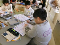 4年生は理科で「もののあたたまり方」について学習していました。この時間は、水のあたたまり方について実験していました。