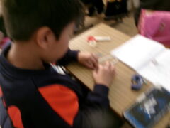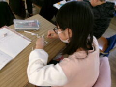 4年生は算数で「変わり方」を学習をしていました。同じ長さの18本のストローを並べて長方形が作れるたて・よこの場が差の組み合わせを調べていました。