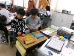 3年生は増工で「コリントゲーム」を作っていました。くぎを打つを楽しみながら、悪戦苦闘しながら楽しいゲームができたでしょうか。?