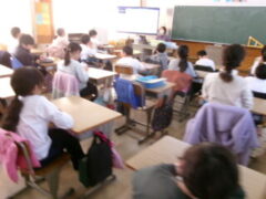 4年生は送る会に向けて、6年生への贈るメッセージの役割を決めていました。