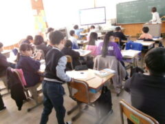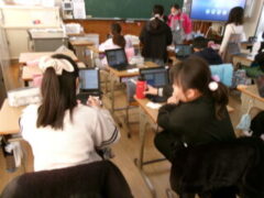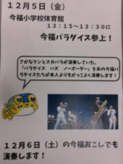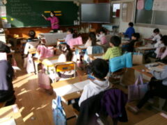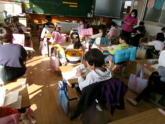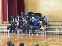 4年生はが吹上小学校で6校交流音楽会がありました。プログラムの順番は、吹上小、芦原小、広瀬小、今福小、砂山小、宮前小でした。前半3校の発表の後、参加児童全員が立って「どんな人が好きですか」をみんなで歌いました。歌詞にもありすが、「右の人にトントン」「左の人にトントン」「まわりの人に トントン」のところを楽しそうにトントンしていました。さて、いよいよ、4番目、今福の出番になりました。やはり緊張はしていましたが、学校紹介のあいさつは、大きな声で堂々と頑張っていました。そして、「もみじ」「世界を旅する音楽教室」の2曲を歌い抜きました。舞台から戻ってきた子供たちの顔は、達成感に満ち溢れていました。4年生の大きな思い出になったと思います。ほっとしたのか、帰りは歩きながら「もみじ」を歌っていました。
