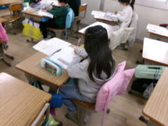 3年生は算数で、3桁×1桁の繰り上がりのある筆算に取り組んでいました。