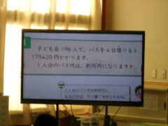 4年生は算数の学習をしていました。問題は、「子ども会196人でバス4台借りると、175429円でした。一人分のバス代は、約何円になりますか。」でした。