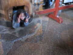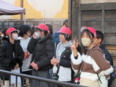 最終見学場所、京都太秦に着きました。早速、集合写真を撮りました。そして、食堂でお昼を食べました。子どもたちは、早く食べて、早速、グループに分かれてアトラクションを見に行きました。どのグループも最初は、お化け屋敷でした。