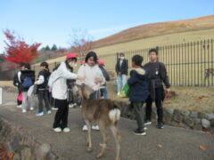 白銀屋でお弁当を食べました。みんなおいしそうに食べていました。(朝早くからお弁当づくりご苦労様でした)。そして、おみやげを買って、鹿と戯れました。