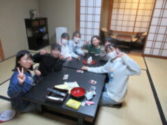 清水寺から旅館に着きました。団体行動でも行儀がよく、ガイドさんのお話にも明るく受け答えしているので、たくさん褒めて頂きました。各部屋でくつろぎながら夕食を待っています。みんな元気です。